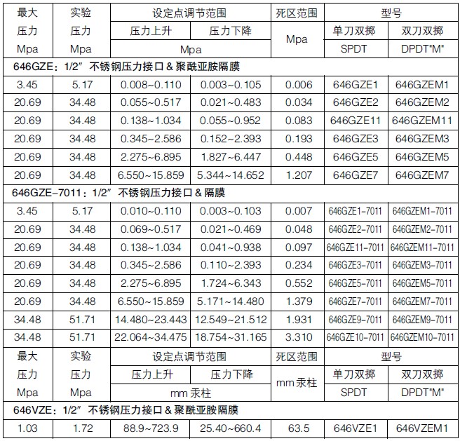 CCS壓力開關(guān)的工作原理:是當系統(tǒng)內(nèi)壓力高于或低于額定的**壓力時,感應器內(nèi)碟片瞬時發(fā)生移動,通過連接導桿推動開關(guān)接頭接通或斷開,當壓力降至或升額定的恢復值時,碟片瞬時復位,開關(guān)自動復位,或者簡單的說是當被測壓力超過額定值時,彈性元件的自由端產(chǎn)生位移,直接或經(jīng)過比較后推動開關(guān)元件,改變開關(guān)元件的通斷狀態(tài),達到控制被測壓力的目的。壓力開關(guān)采用的彈性元件有單圈彈簧管、膜片、膜盒及波紋管等。
