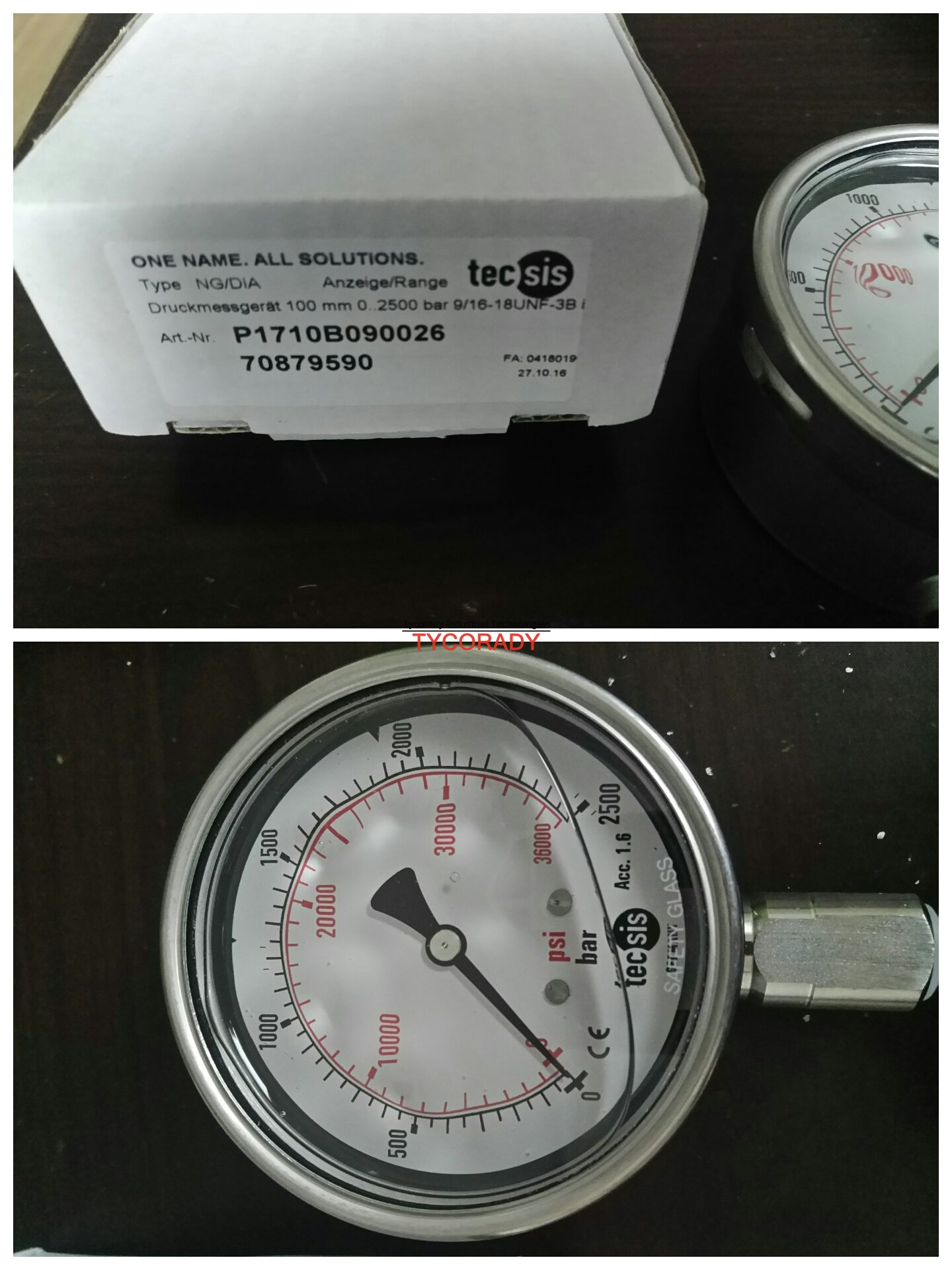 不銹鋼超高壓**壓力表符合 EN 837-1/S3,標準尺寸表徑100,帶或不帶接點,接口位置底部徑向。全不銹鋼壓力表,表殼材質(zhì):304不銹鋼機芯材質(zhì):316L不銹鋼表園大小:100mm精 度:1.6連接螺紋:M16x1.5內(nèi)螺紋,9/16-18UNF內(nèi)螺紋(其他可選)連接方向:徑向量程范圍:0……1600bar到0……4000bar充 液:甘油(硅油可選)防護等級:IP65